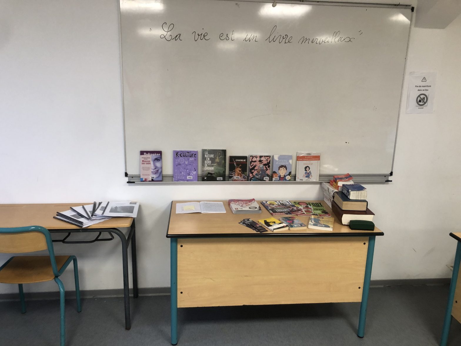 La salle d’étude dispose désormais d’un espace dédié à la lecture. Pensé pour permettre aux élèves de s’occuper autrement, de découvrir de nouveaux textes et de passer un moment agréable, cet espace propose une sélection de lectures choisies et renouvelées régulièrement.